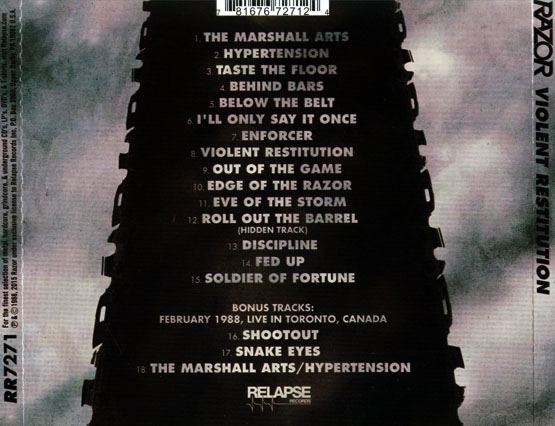 Однако такая постановка вопроса привела к расколу Razor на два лагеря, и Карло поддержал только МакЛарен. Дэйв взял бразды правления в свои руки, и сам написал весь материал для следующего альбома. Его злейшая энергия выплеснулась через край, материализовавшись в виде "Violent Restitution". Пластинка з ...