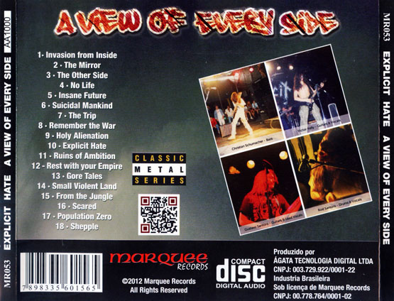 На данном CD находится антология творчества отличной бразильской банды "Explicit Hate" - дебютный альбом "A View Of The Other Side" 1988 года выпуска,добитый демками периода 1987-1990 г.г.