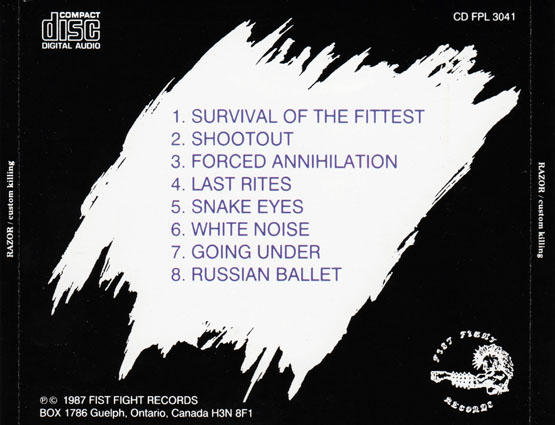 Предоставленные сами себе, музыканты занялись экспериментами и на свои деньги записали "Custom Killing" - альбом с длинными эпическими композициями. И хотя пластинка получилась, пожалуй, лучшей в дискографии Razor, ее ждал коммерческий провал. Дэйв Карло стал агитировать остальных коллег за продвижение к новому уровню путем добавления свирепости и доведения скорости игры до сверхпредельной.