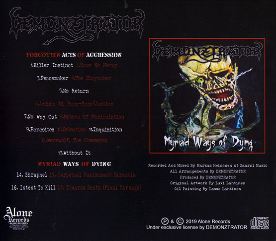 Изначально альбом был выпущен в цифре и прдставляет собой трибьют стареньким финским трэш-командам. В 2019 году последовала епиха Myriad Ways of Dying. Ну а текущем году оба продукта были изданы греческим лейблом Alone Records на одном диске. На данный момент пишется новый материал...